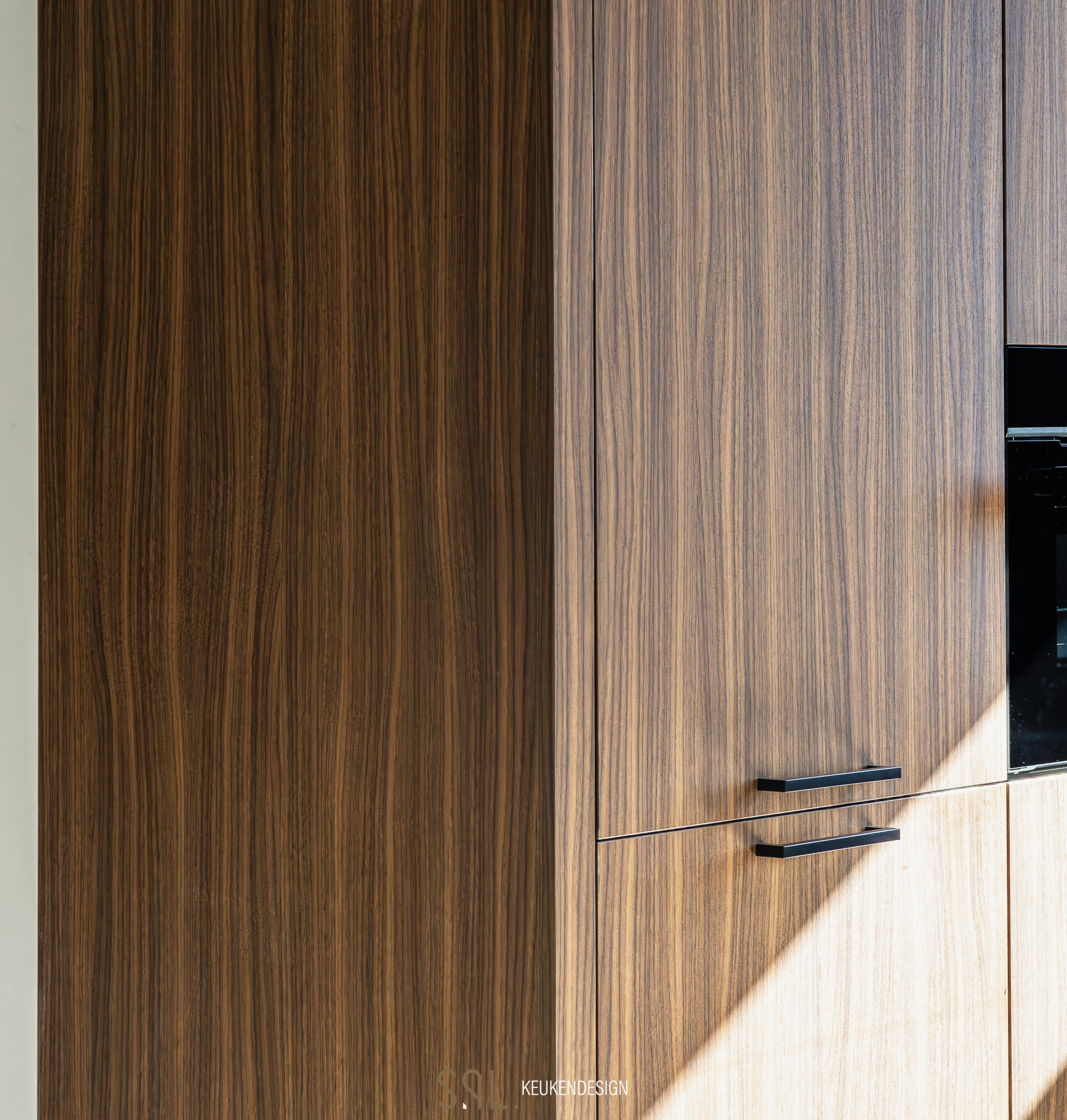 De combinatie van het diepe houtdecor van @decolegno LS47 Poro Noce met het poedercoat maatwerk van @made_by_das geeft de keuken een moderne en strakke uitstraling.