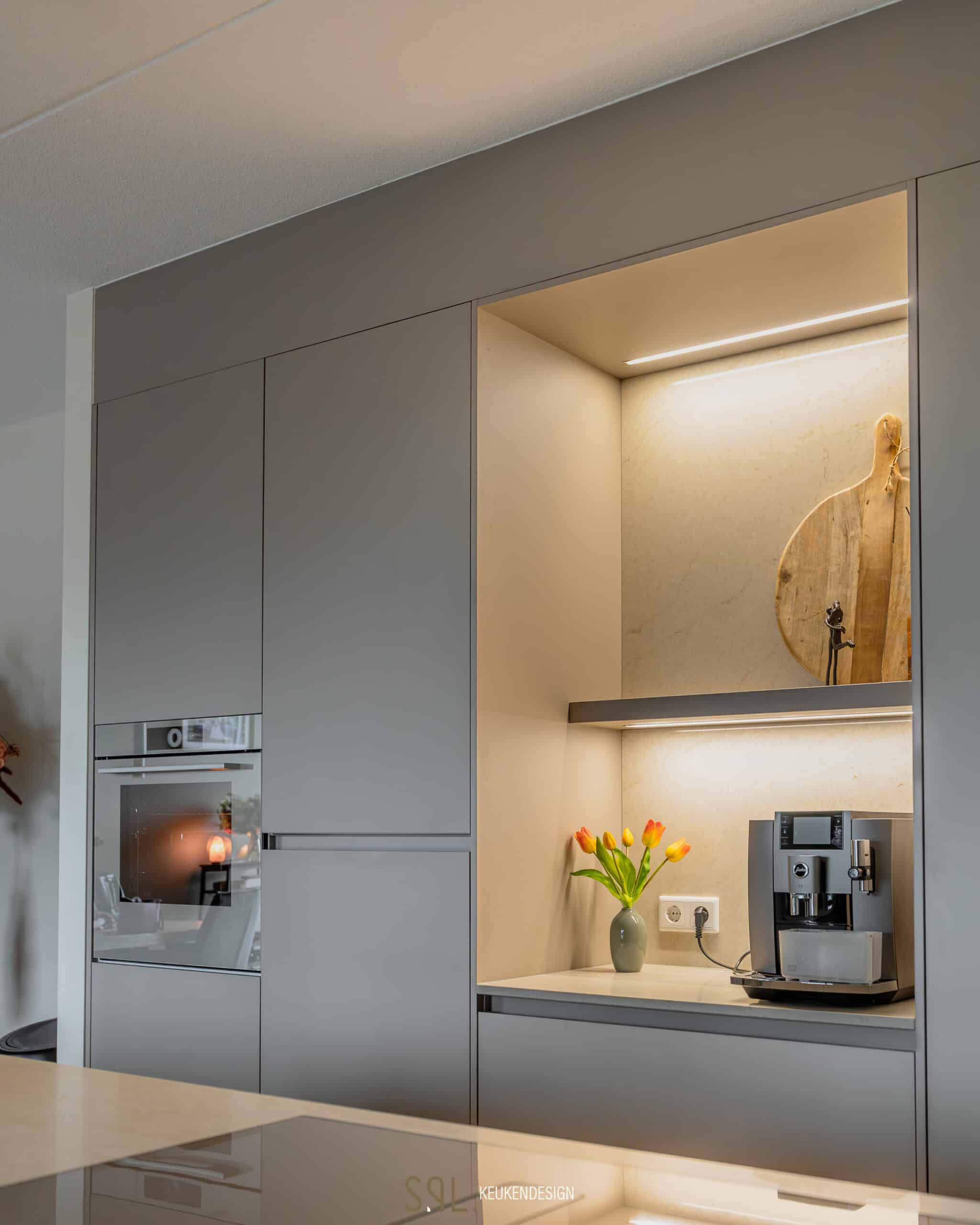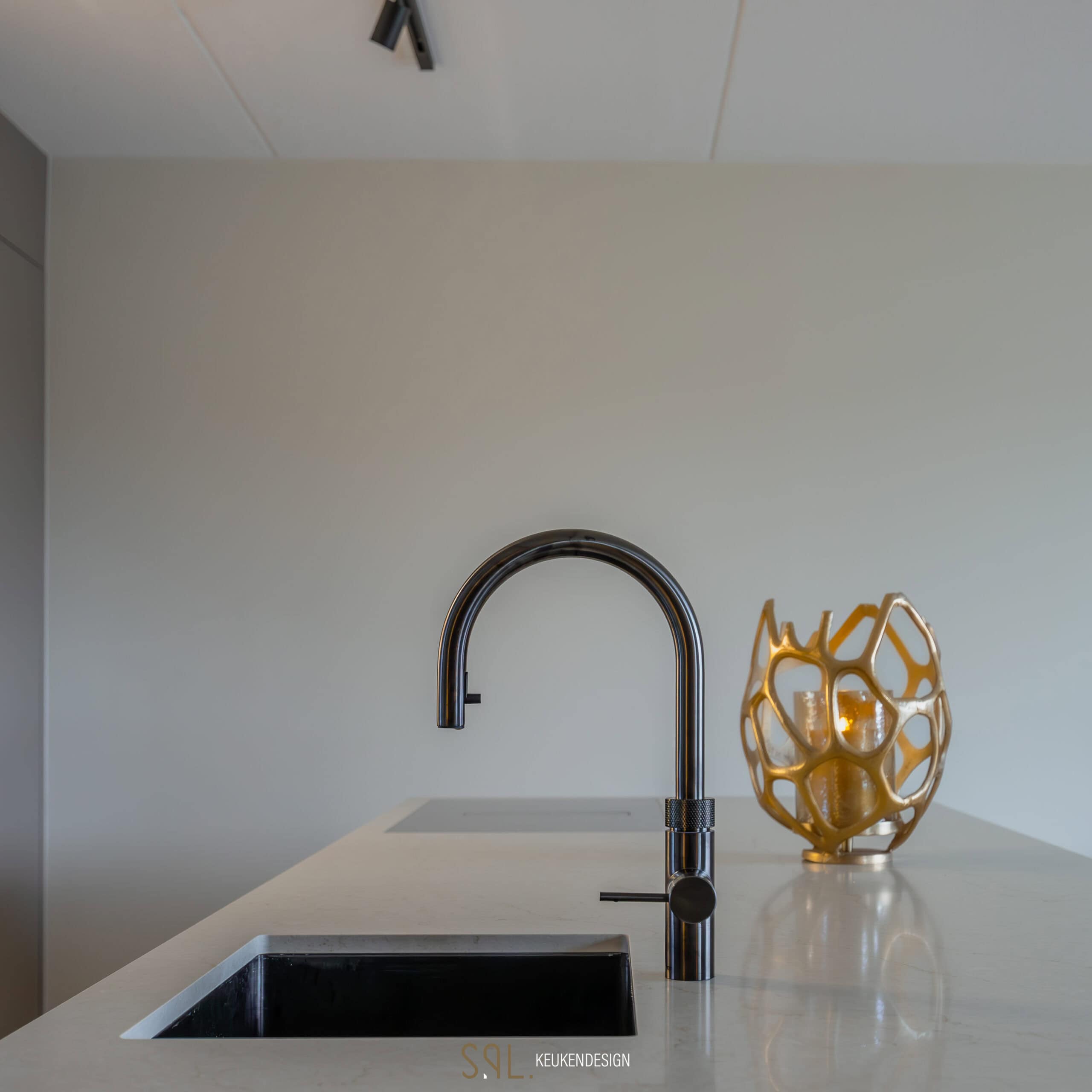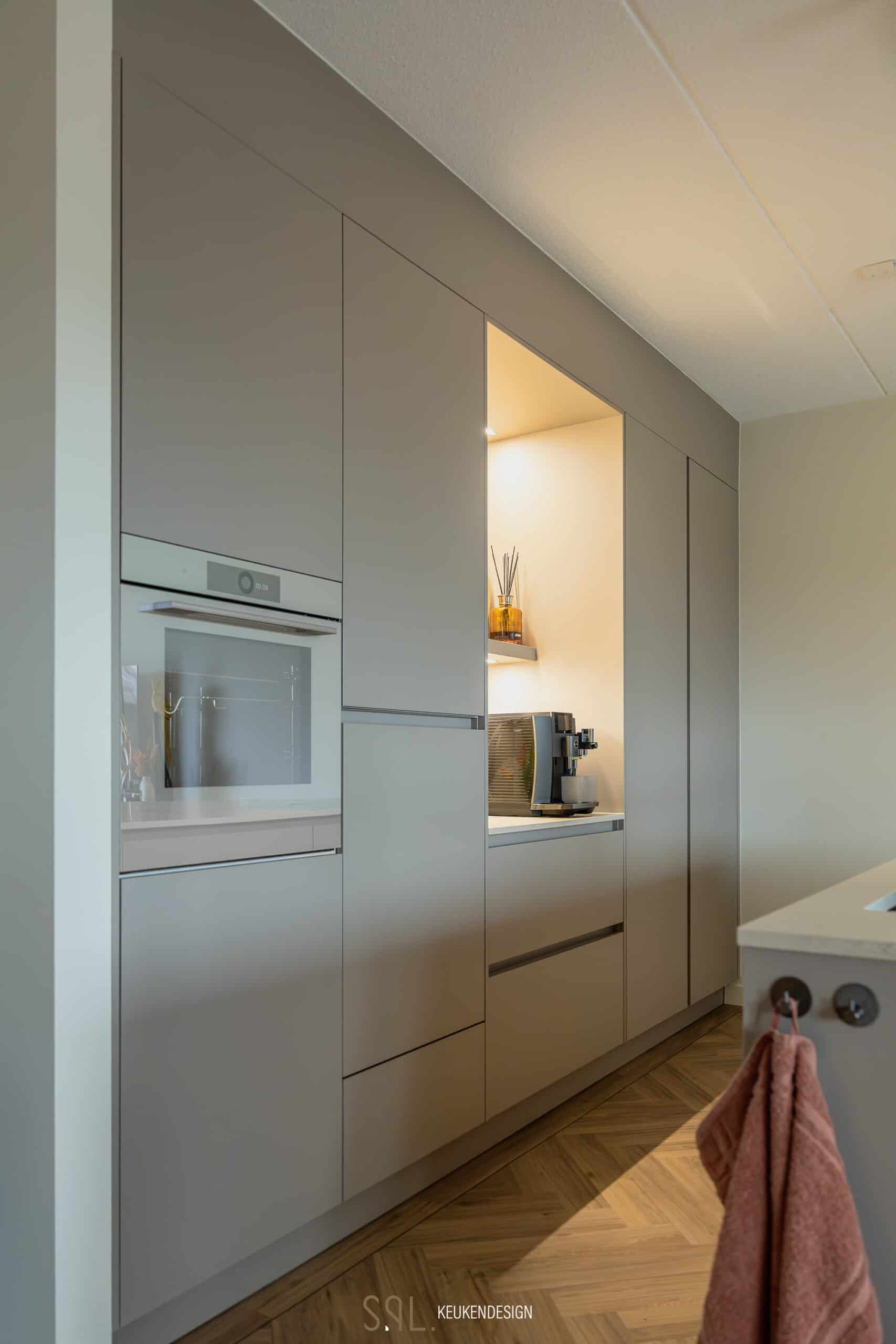 Rust & eenheid komen samen in deze prachtige ton-sur-ton keuken in de kleur Klei. De balans tussen design en functionaliteit wordt versterkt door het rustige Mayal Royal werkblad van @kemie.nl, welke een composiet is.