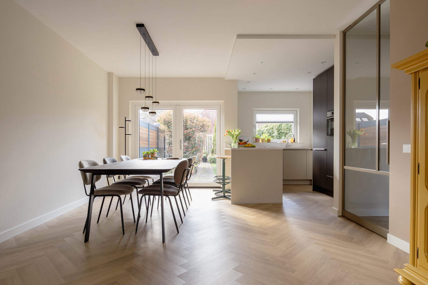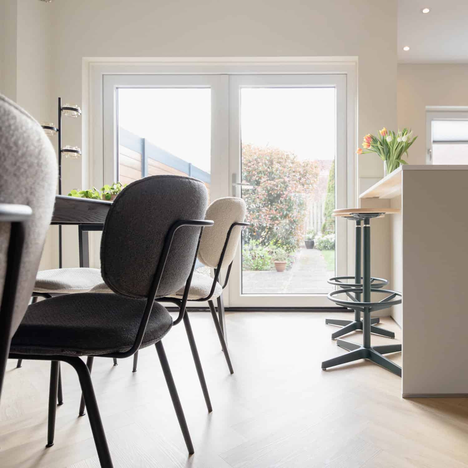 Heeft u een gesloten keuken, maar wilt u deze eigenlijk betrekken bij de gehele ruimte, dan is dit hét perfecte voorbeeld! Bij onze klanten mochten we helemaal losgaan en dat resulteerde in dit prachtige resultaat. Muurtjes werden verwijderd, vloeren werden vervangen door een mooie warme PVC vloer. Nieuwe schuifpui, stukadoorswerk en nog veel meer.