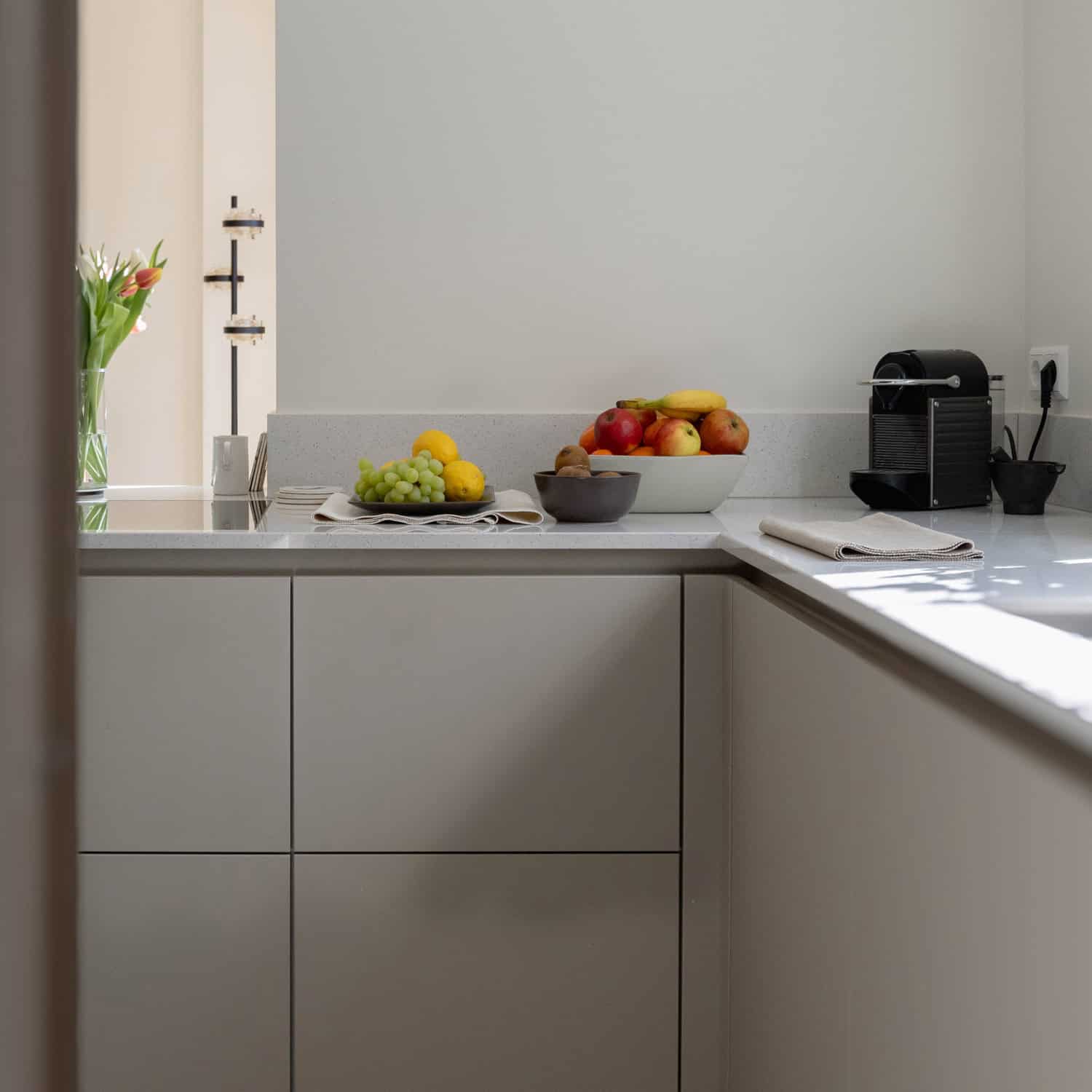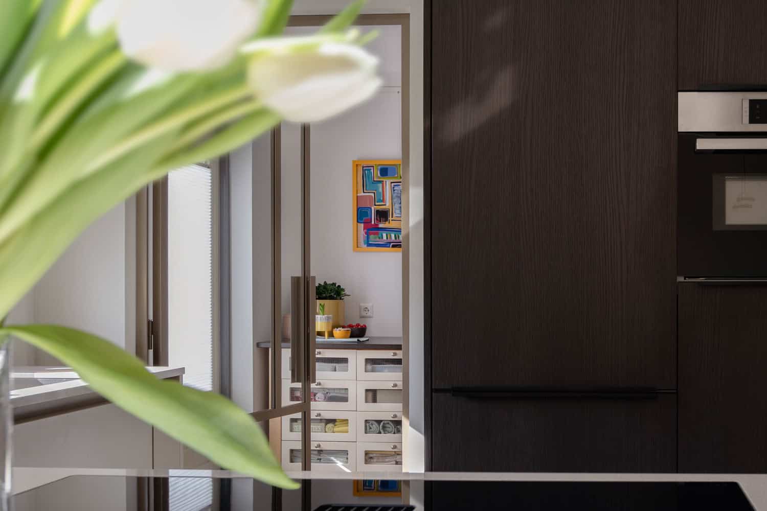 Keukenfabrikant: Made By Das, poedercoat ‘Dakar’ & ‘Quartz eiken’.